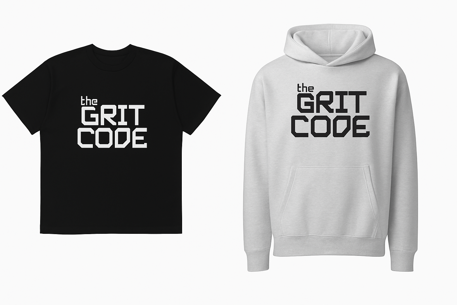 A bold statement piece for everyday wear. This black t-shirt features The Grit Code logo in a striking geometric font, printed in crisp white for maximum contrast. Crafted from soft, breathable fabric, it’s perfect for casual styling, gym sessions, or making a confident impression wherever you go.